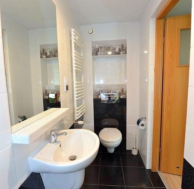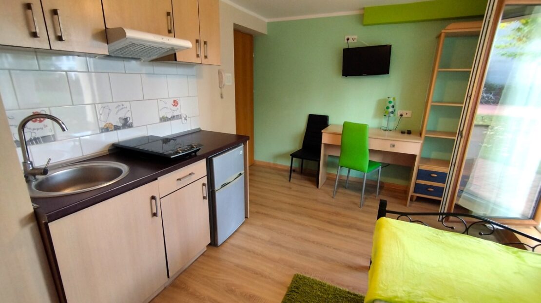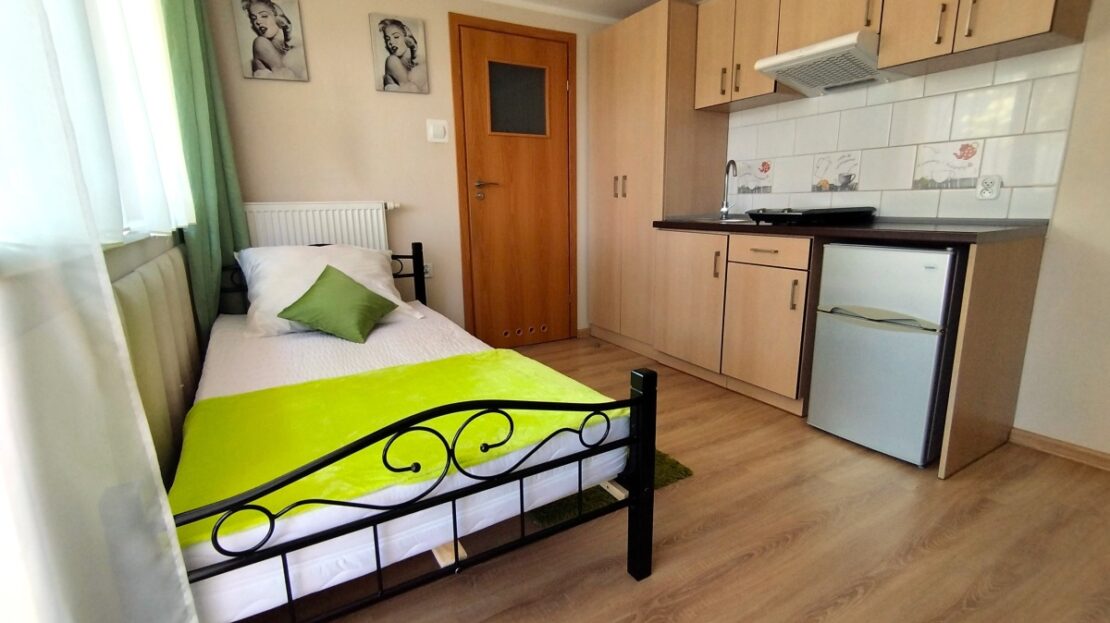 Mieszkanie w pełni wyposażone i umeblowane . TV cyfrowy Panasonic z aktualnym dekoderem , router WIFI – Internet po kablu lub WIFI .Do dyspozycji płyta indukcyjna dwustanowiskowa, lodówka , suszarka do naczyń, zasłony, firanki , krzesła , pojemna szafa na ubrania, dywanik , biurko z szufladami, wygodne łóżko z komfortowym materacem