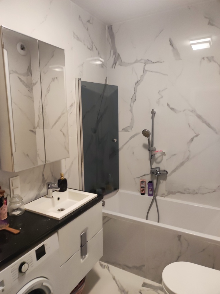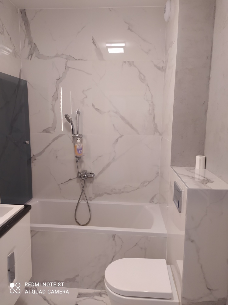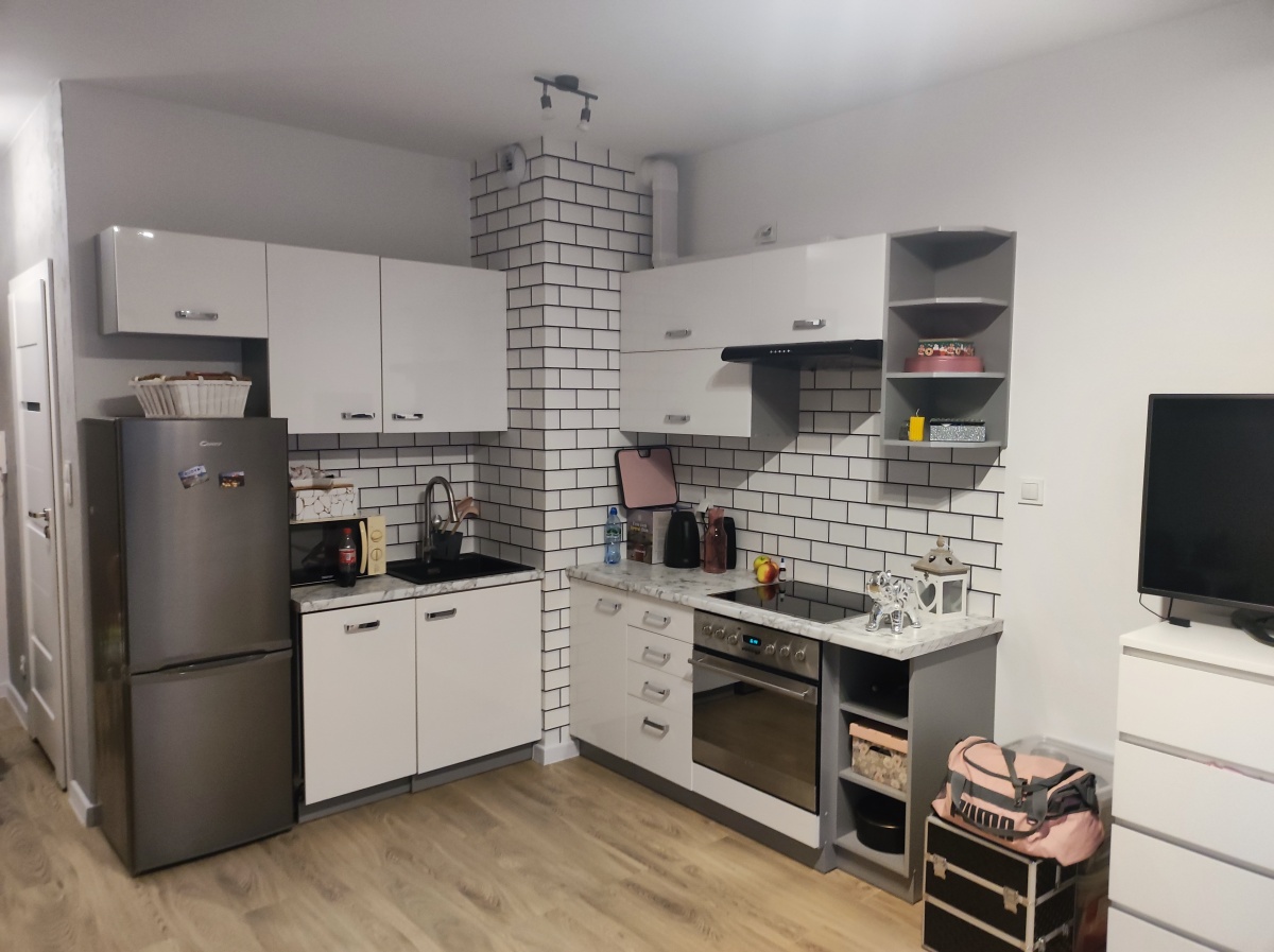 Mieszkanie jest w pełni wyposażone – do dyspozycji najemców są meble, pralka, lodówka, piekarnik, płyta ceramiczna, zmywarka, telewizor oraz kuchenka mikrofalowa.