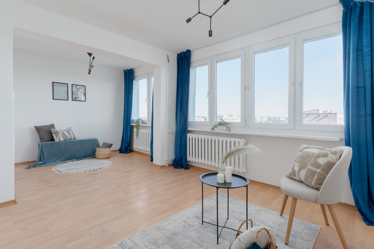 Mieszkanie znajduje się na 11. piętrze (winda dojeżdża do 10. piętra). Pełna własność z księgą wieczystą.