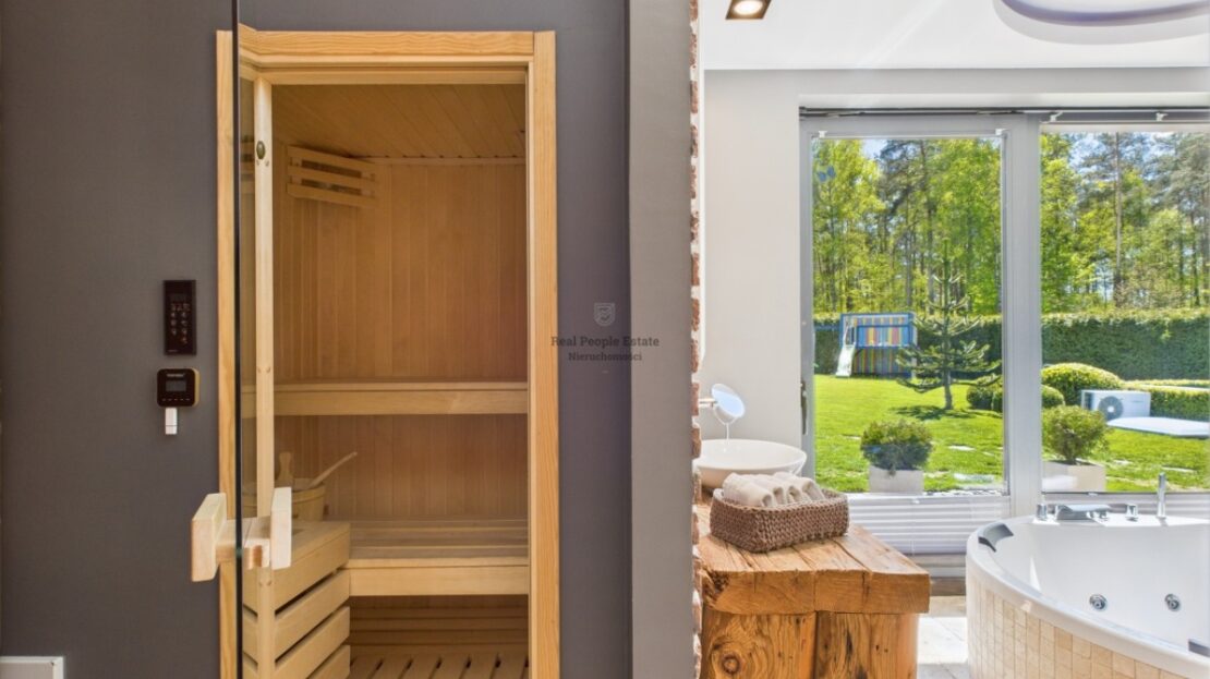 Nie trzeba jechać do Finlandii – wystarczy dobrze skręcić na własnym korytarzu. Ta sauna pozwala na pełen relaks po dniu pracy czy zimowym spacerze. Widok przez przeszklone drzwi na ogród daje uczucie kontaktu z naturą i spokoju.
