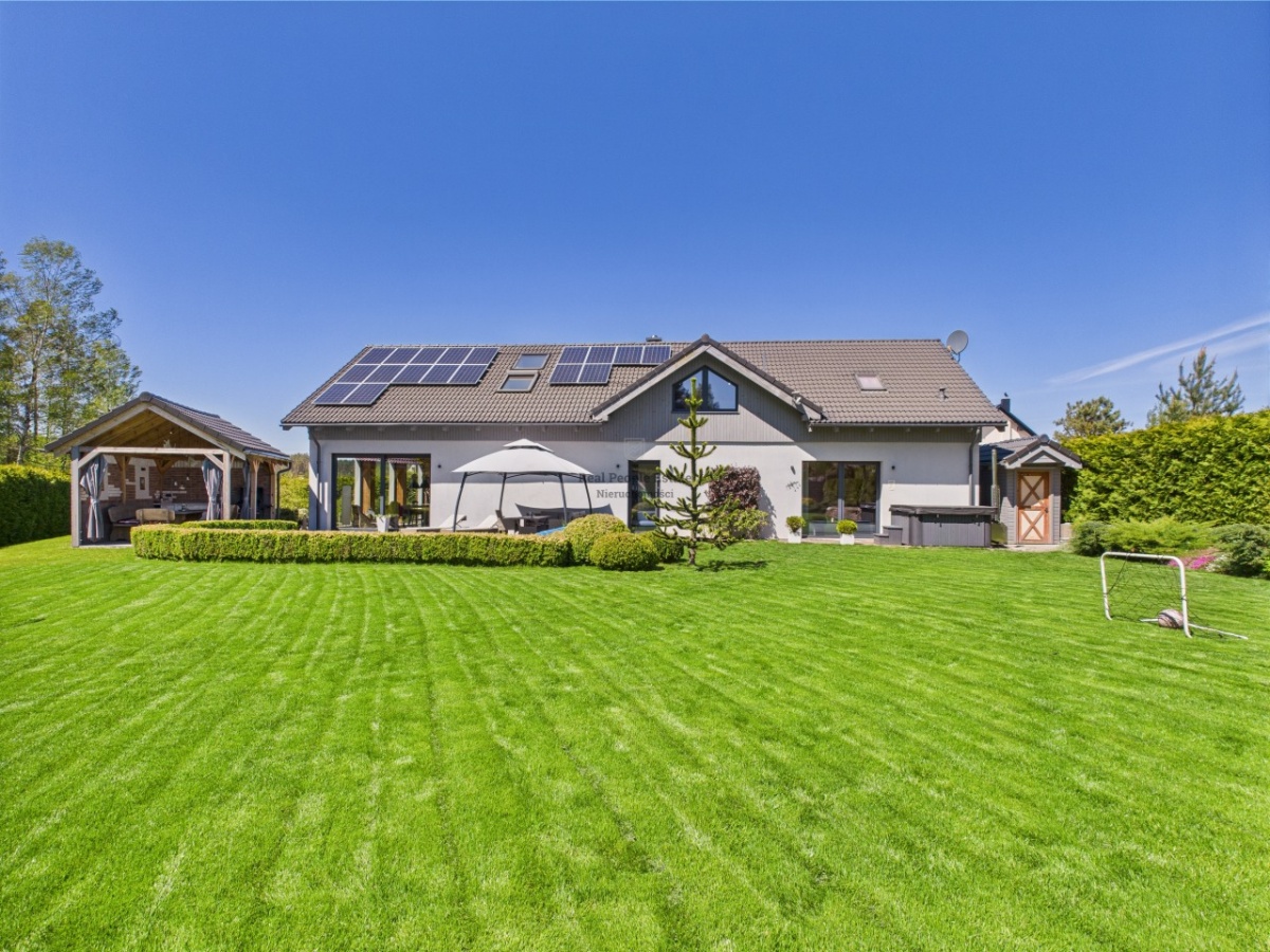 Zamieszkaj w miejscu, gdzie natura spotyka się z nowoczesnym komfortem. Ten wyjątkowy dom położony jest w sercu Kaszub – w Kłącznie (15 km od Bytowa), 400 metrów od jeziora, w otoczeniu lasów i ciszy. To prawdziwa oaza dla tych, którzy pragną harmonii, przestrzeni i luksusu.
