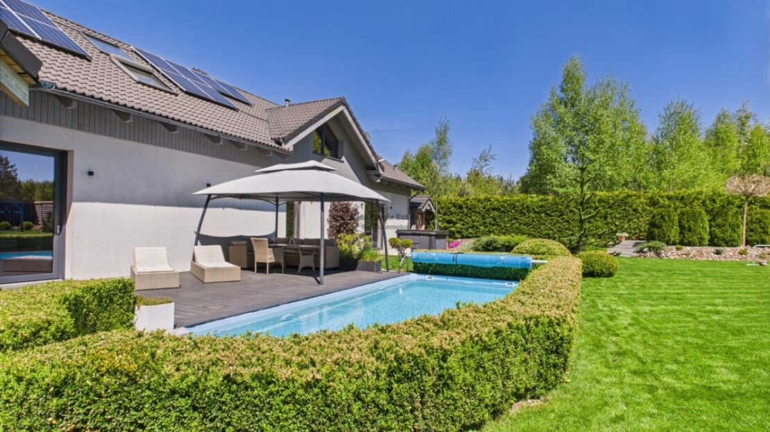 Niedługo kolejny triatlon albo przygotowujesz się do kwalifikacji olimpijskich? – w tym ogrodzie masz własny system do treningów pływackich. Basen podgrzewany pompą ciepła pozwala korzystać nawet w chłodniejsze dni, a iluminacja wieczorem tworzy klimat jak z ekskluzywnego resortu.