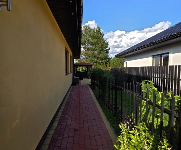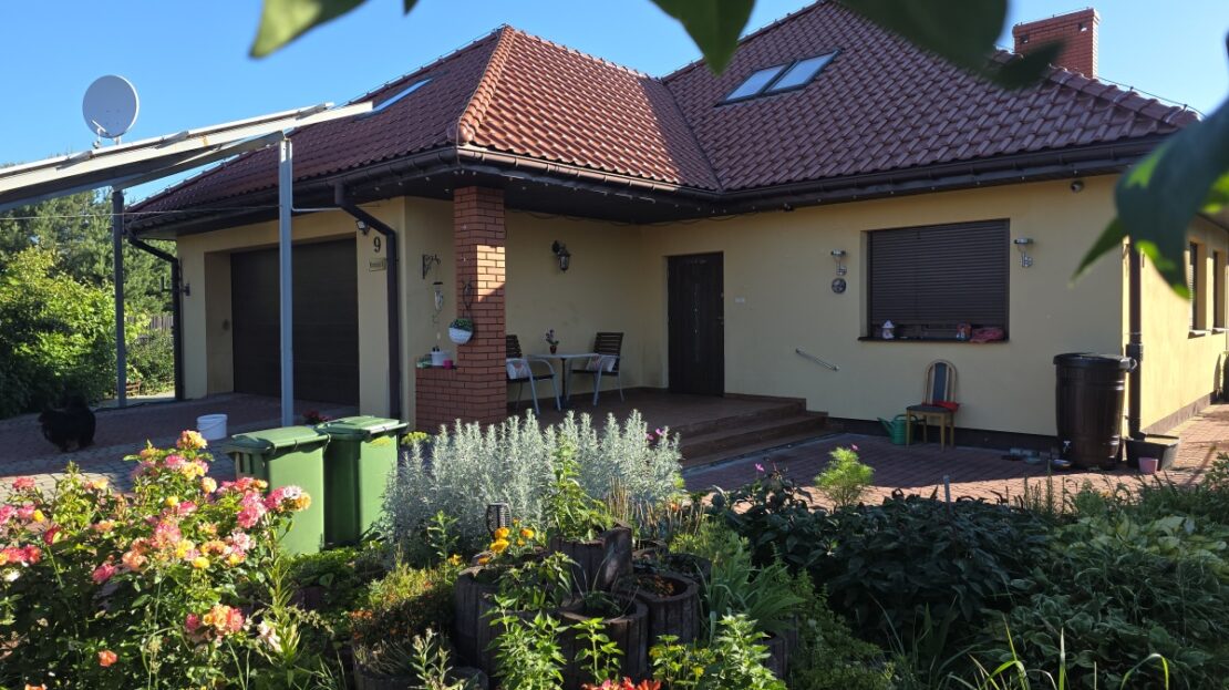 Budynek jest parterowy z użytkowym poddaszem. Przód i tył posesji zdobi starannie zaprojektowany ogród z licznymi nasadzeniami ozdobnymi. Do dyspozycji mieszkańców pozostają: