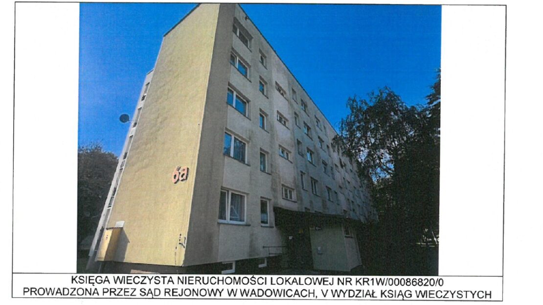 Przedmiotem sprzedaży jest udział 5/8 w nieruchomości lokalowej stanowiącej samodzielny lokal mieszkalny nr 8 położony na III piętrze budynku wielolokalowego nr 6a przy ulicy Kopernika w Wadowicach posiadający powierzchnie 59,86 m2 dla której Sąd Rejonowy w Wadowicach V Wydział Ksiąg Wieczystych prowadzi KW o numerze: KR1W/00086820/0.