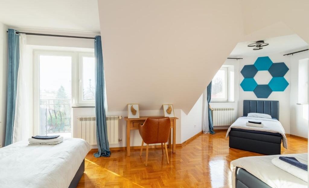 14 niezależnych pokoi, każdy z prywatną łazienką – idealne pod wynajem krótko- lub długoterminowy.