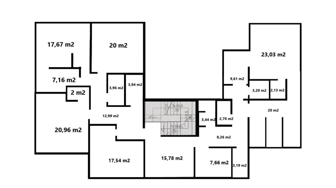 – sale o pow.: ok. 9,5 m2; 23 m2, 20 m2, 21 m2, 17,5 m2, 20 m2,
