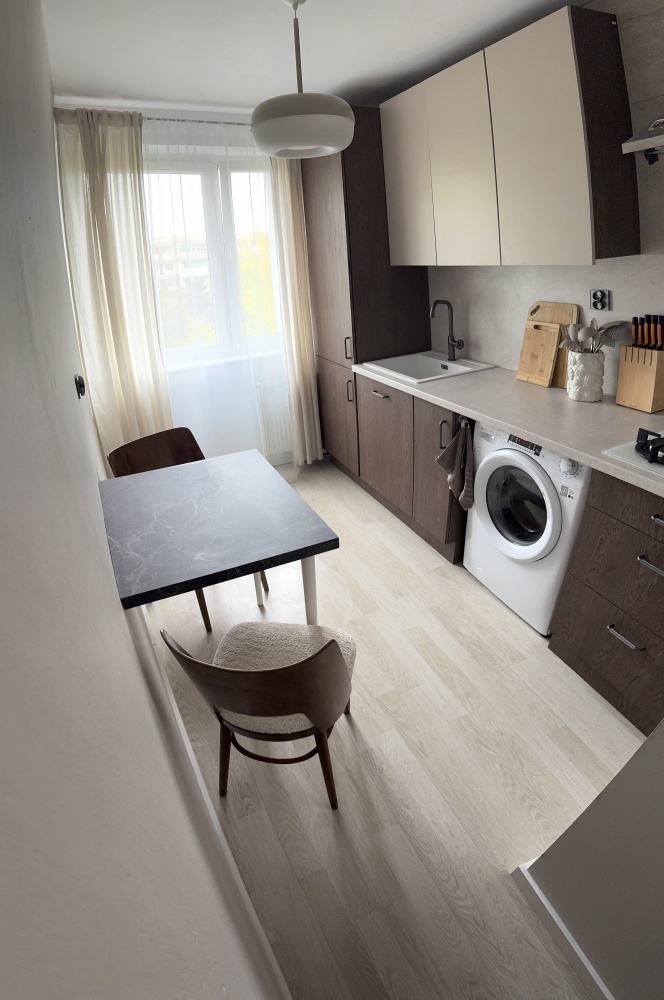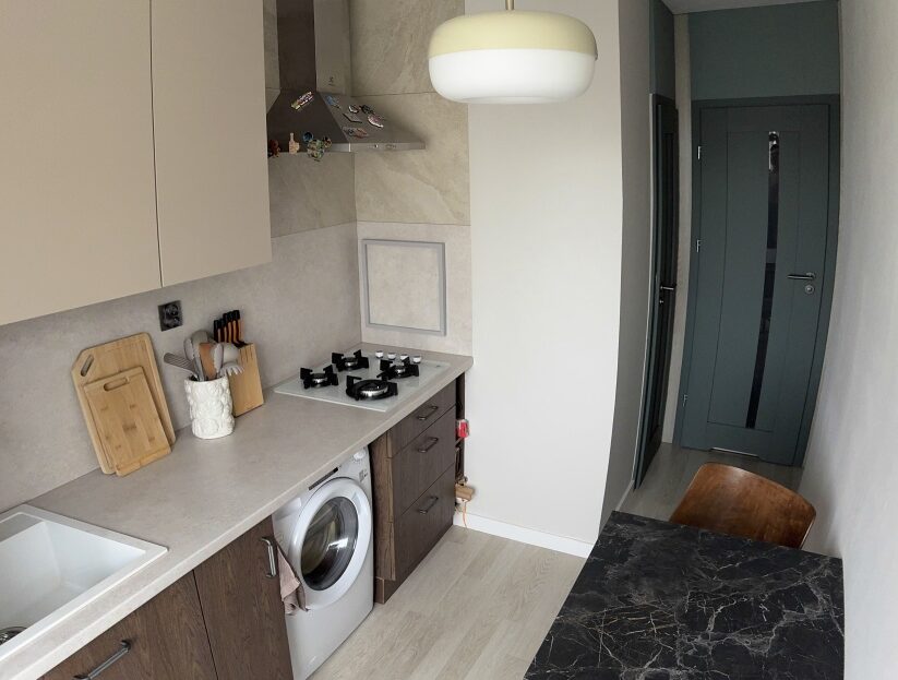 Osobna kuchnia z wysokiej klasy sprzętem, wymieniona instalacja hydrauliczna oraz elektryczna, jednolita podłoga w strefie dziennej, w sypialni oraz kuchni, całe mieszkanie wykończone w neutralnych barwach.