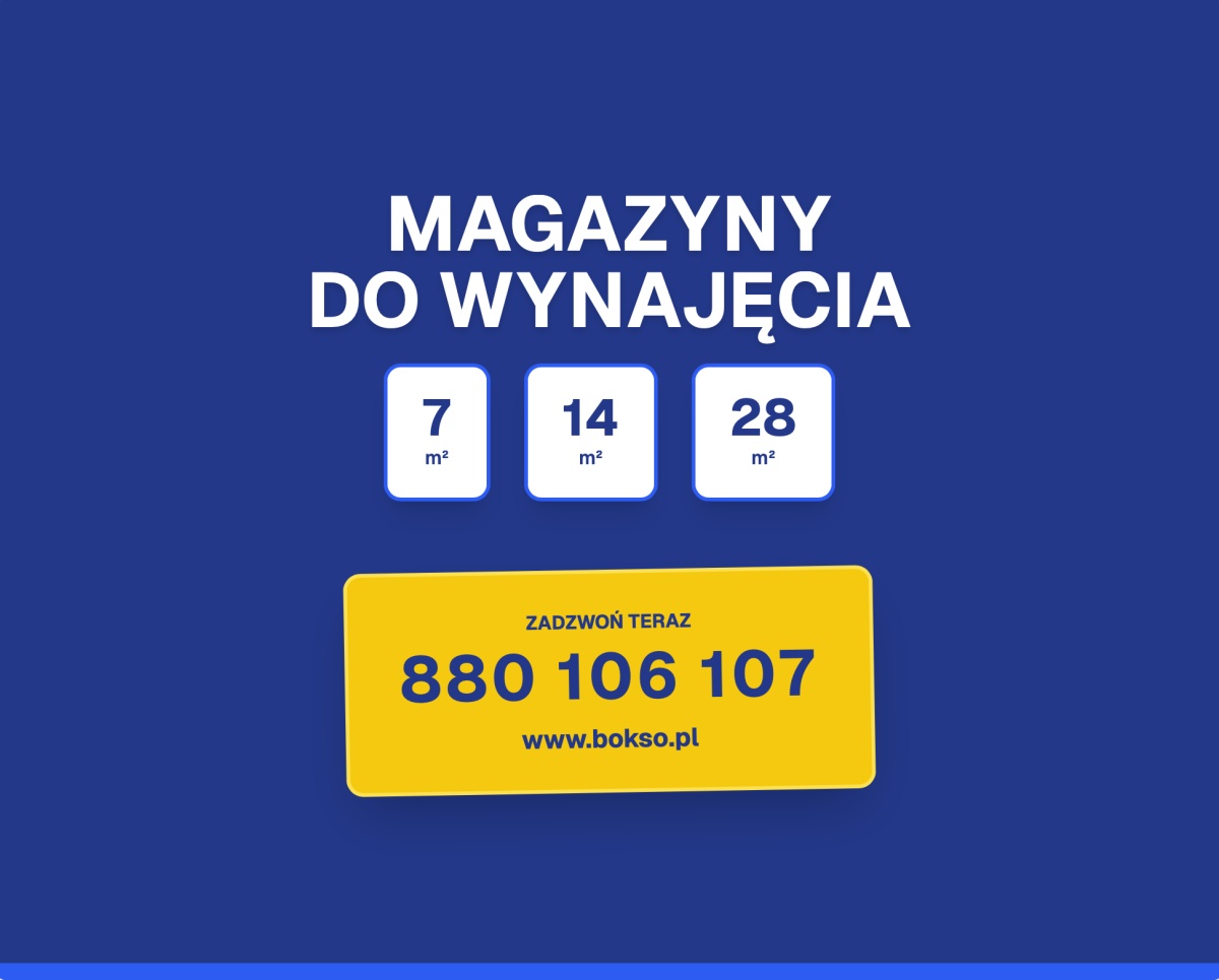 Magazyny 14 m² i 28 m² – idealne do przechowywania towarów, sprzętu firmowego, archiwum, mebli czy rzeczy prywatnych
