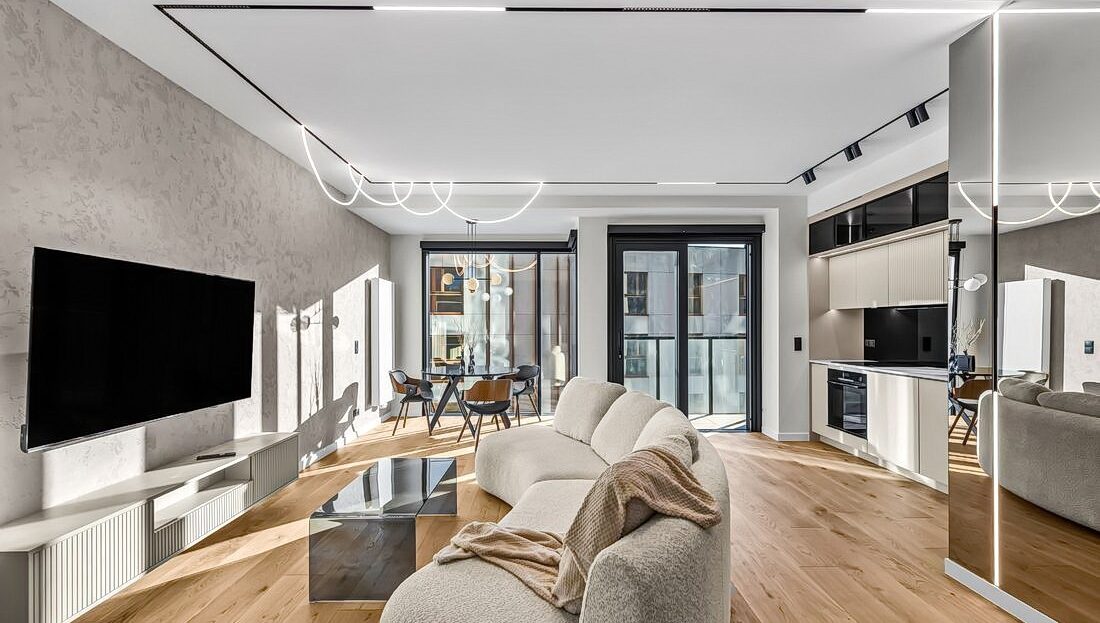Nowoczesny apartament w biznesowym sercu Warszawy, tuż przy metrze Rondo Daszyńskiego, w sąsiedztwie Warsaw Hub i pasażu usługowego.