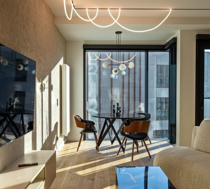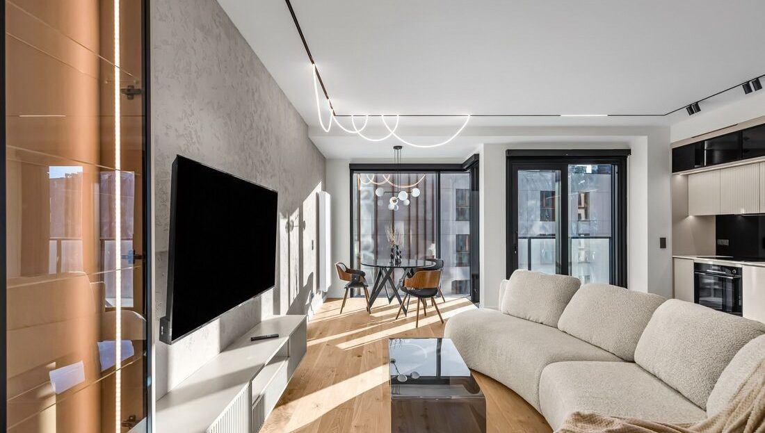 Ten apartament to połączenie nowoczesnej elegancji, najwyższej jakości materiałów oraz funkcjonalnych rozwiązań.