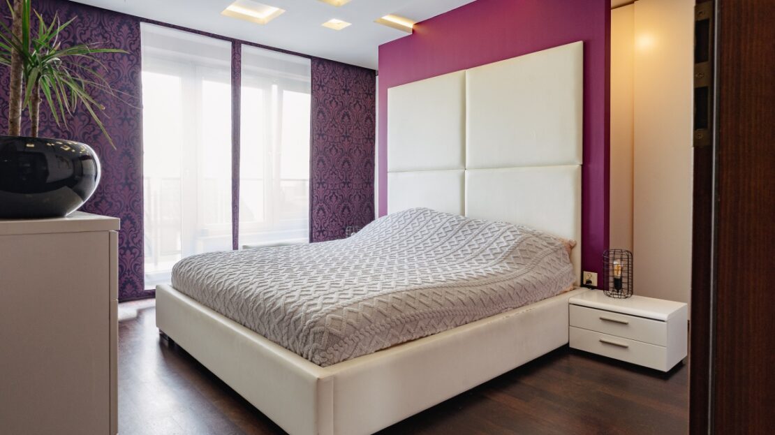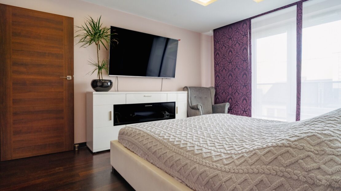 Sypialnia główna (19,5 m²) – z dużą garderobą i podwieszanym, podświetlanym sufitem