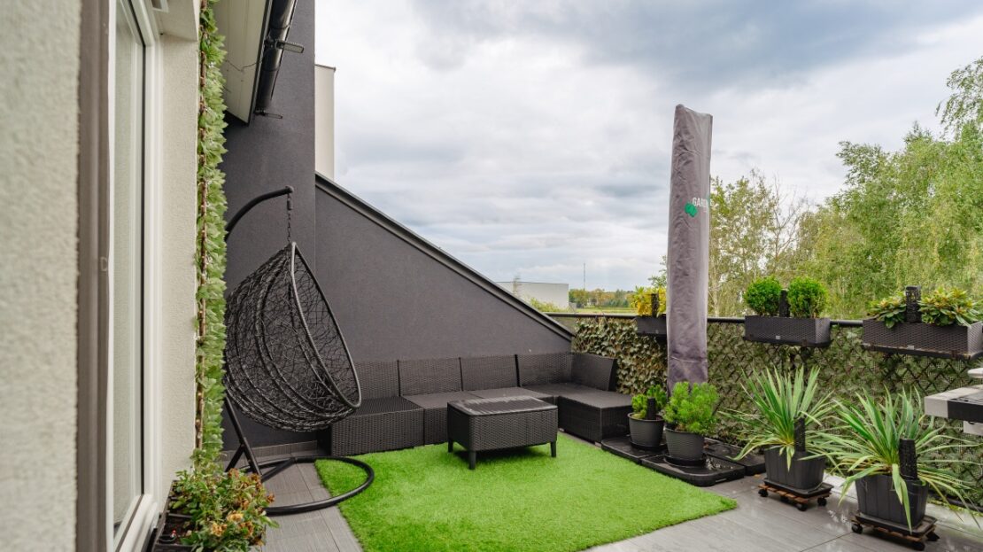 Taras (ok. 30 m²) – ekspozycja południowo-zachodnia, częściowo zadaszony