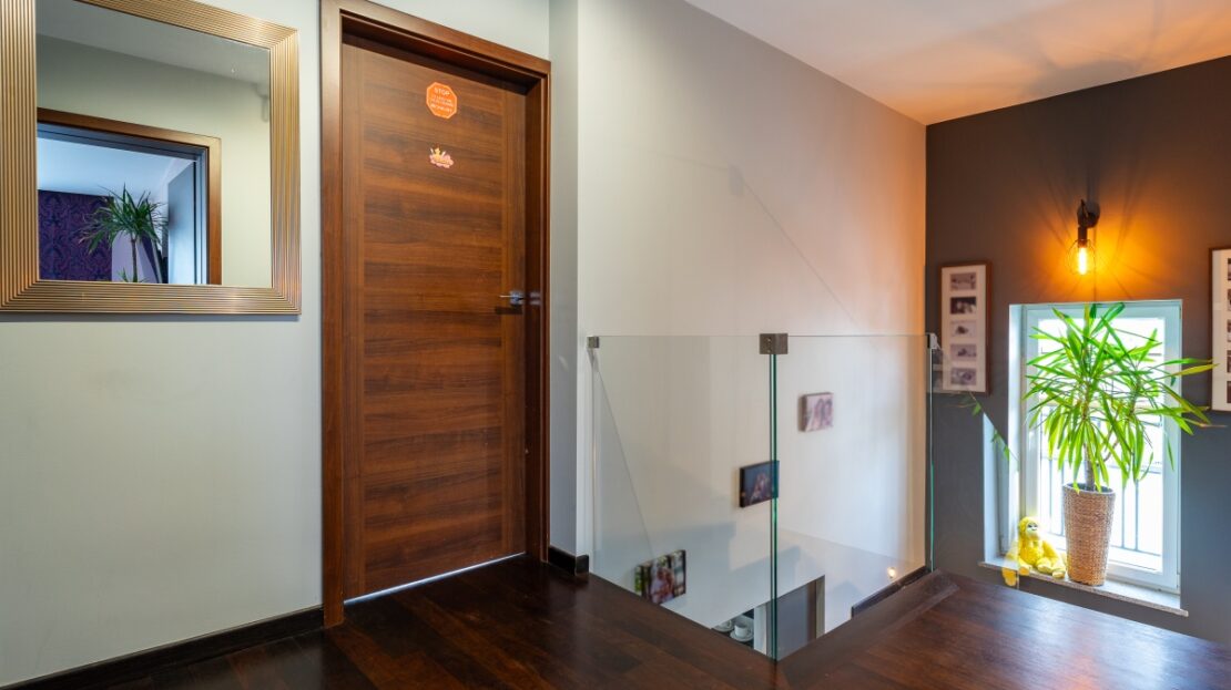 Nieruchomość wykończona z dbałością o każdy szczegół – projekt wnętrza przygotowany przez architekta, z wykorzystaniem materiałów najwyższej klasy (m.in. drewno merbau – podłogi, naturalny kamień dekoracyjny, podwieszane sufity,podświetlane led).