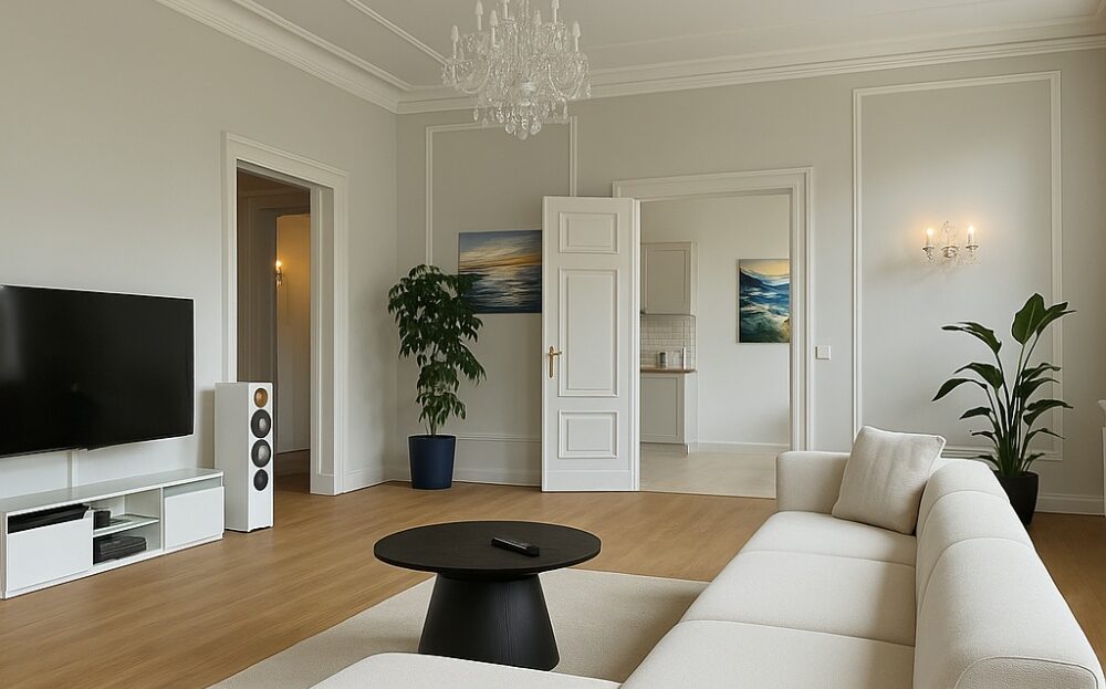 Na 5 pokoi składają się jasne i wysokie wnętrza z dużymi nowymi oknami, które dają wiele możliwości aranżacyjnych – idealne zarówno dla rodziny, jak i pod prestiżowe biuro.