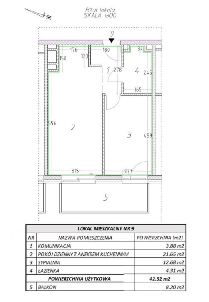 Powierzchnia mieszkania: 42,52 m²
