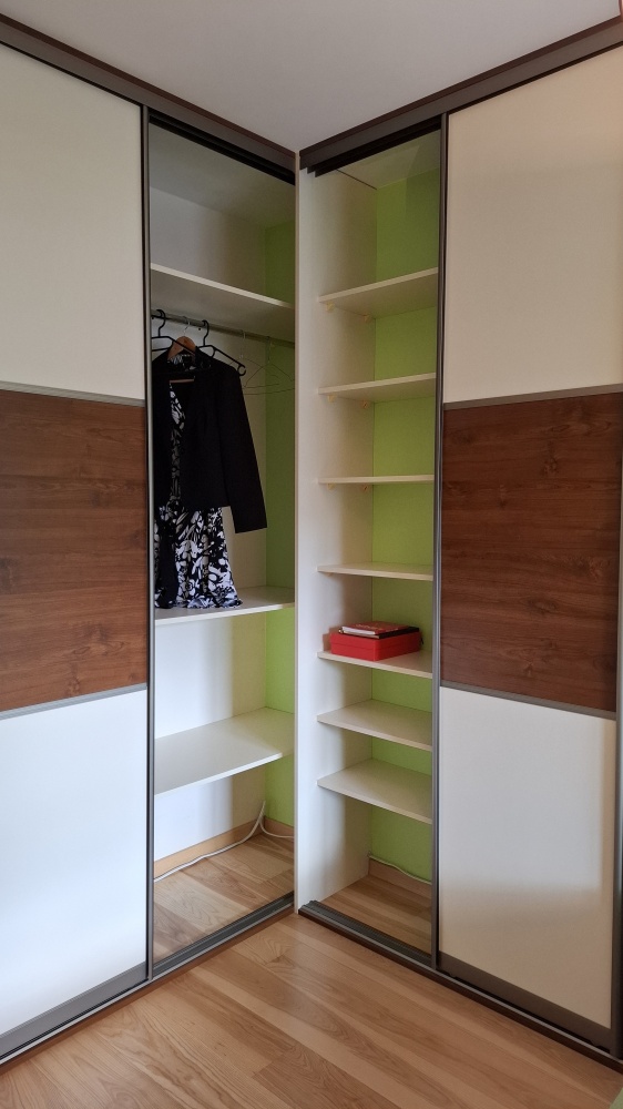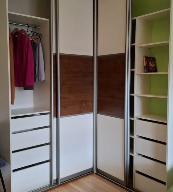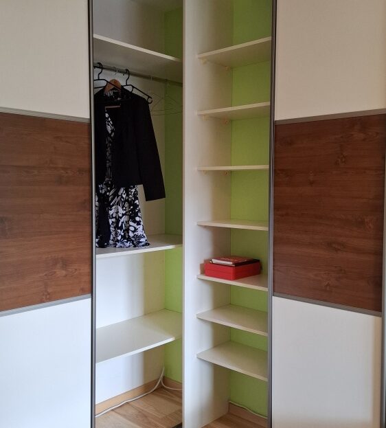szafy wnękowe o dużej pojemności, dobrze zorganizowane + meble