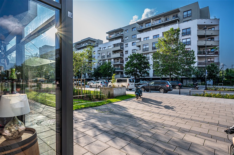 Świetnie rozwinięta infrastruktura – w pobliżu sklepy, punkty usługowe, restauracje i kawiarnie tętniące życiem, siłownie, tereny zielone i spacerowe.