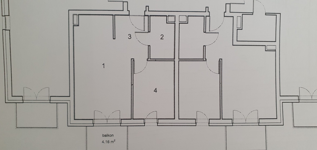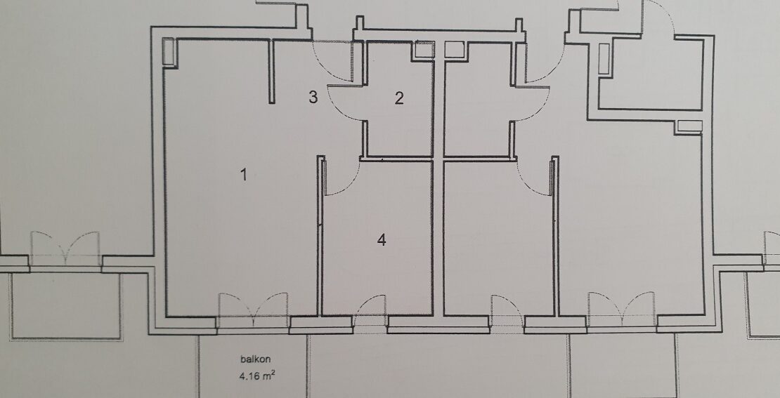 Dwa pokoje 42,09 mkw., piętro 1/2, balkon (bez skosów, mieszkanie środkowe)