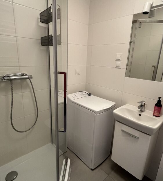 Dwa pokoje, kuchnia w pełni umeblowana i wyposażona w nowe sprzęty agd: zmywarka, lodówka, płyta, piekarnik, okap, pralka.