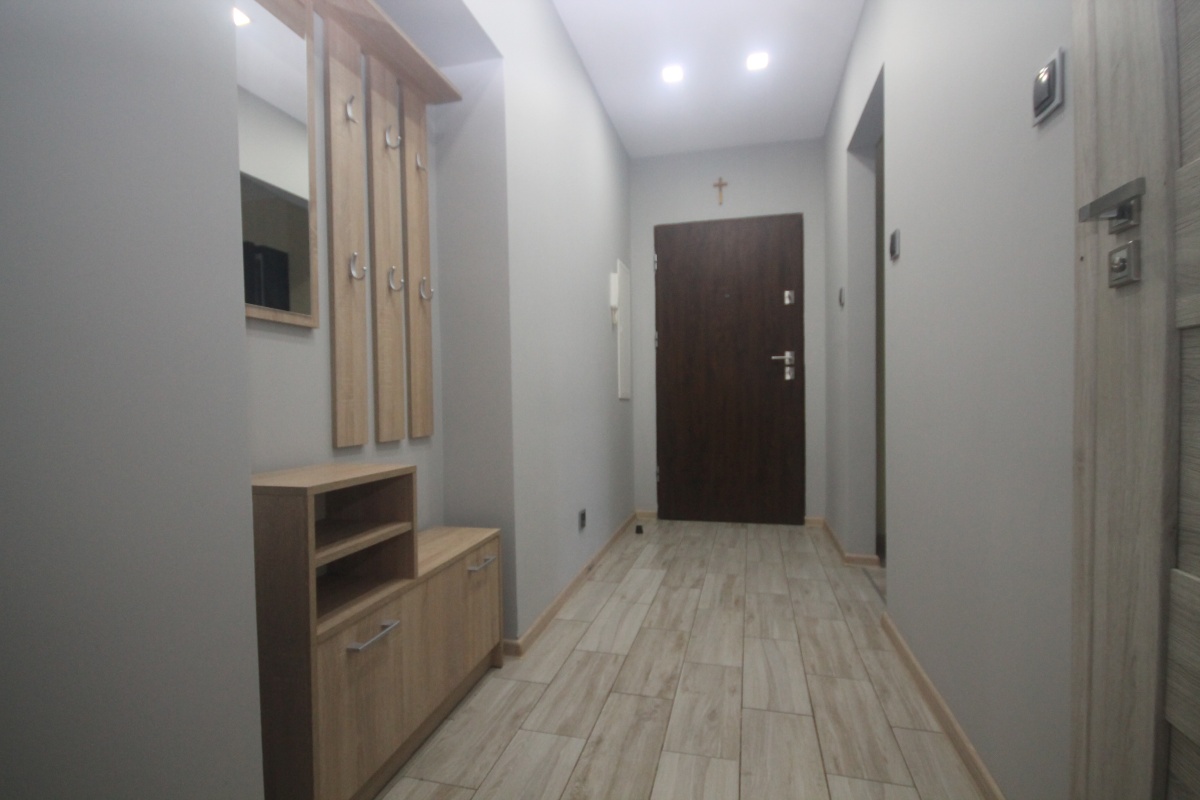 Mieszkanie po generalnym remoncie, wymienione drzwi zewnętrzne, nowa kuchnia w zabudowie ze sprzętem AGD, łazienka po remoncie z kabiną prysznicową.
