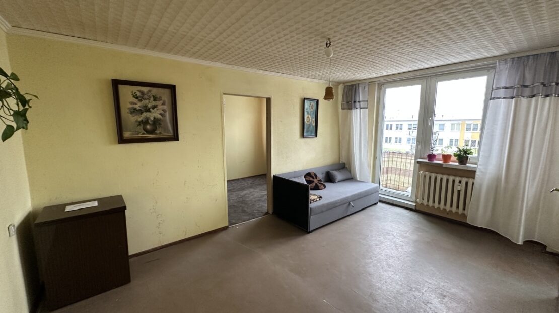 Lokal o powierzchni 40.2 m2 składający się z dwóch pokoi, łazienki z WC, kuchni, oraz przedpokoju. Z pokoju dziennego wyjście na balkon. Do mieszkanie przynależy komórka.