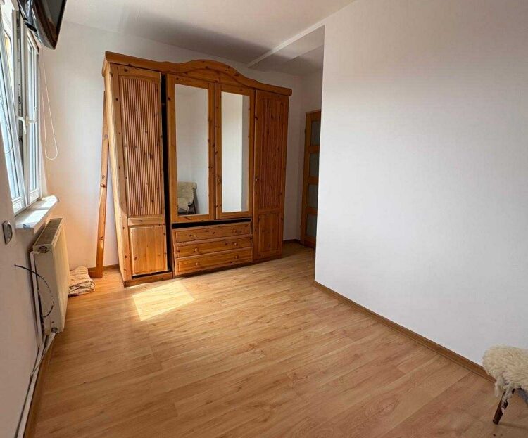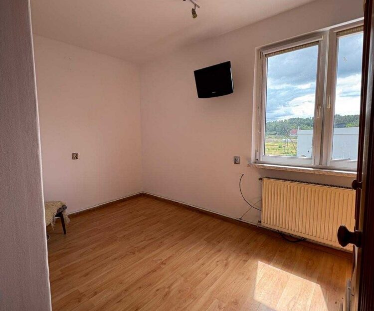 Są tu trzy pokoje – jeden z nich, z wejściem bezpośrednio z kuchni, aż prosi się o to, by stać się przytulną jadalnią – sercem domu, w którym pachnie kawa, a rozmowy trwają do późna.