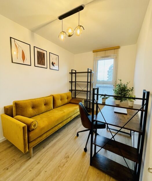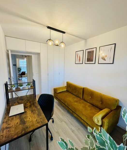 – drugiej sypialni/gabinetu (wygodna rozkładana sofa, duża szafa, regał, biurko),