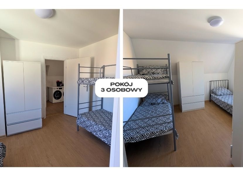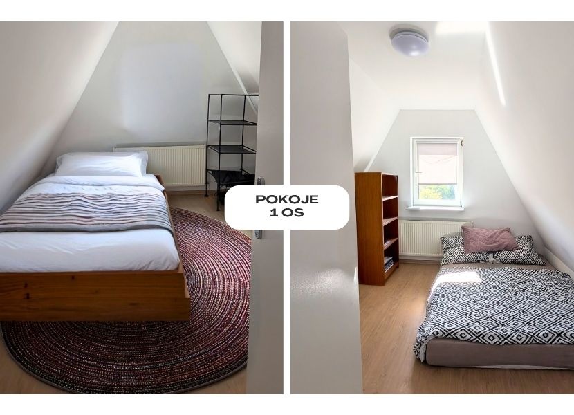 5 w pełni umeblowanych pokoi (1x trzyosobowy, 2x dwuosobowe, 2x jednoosobowe)