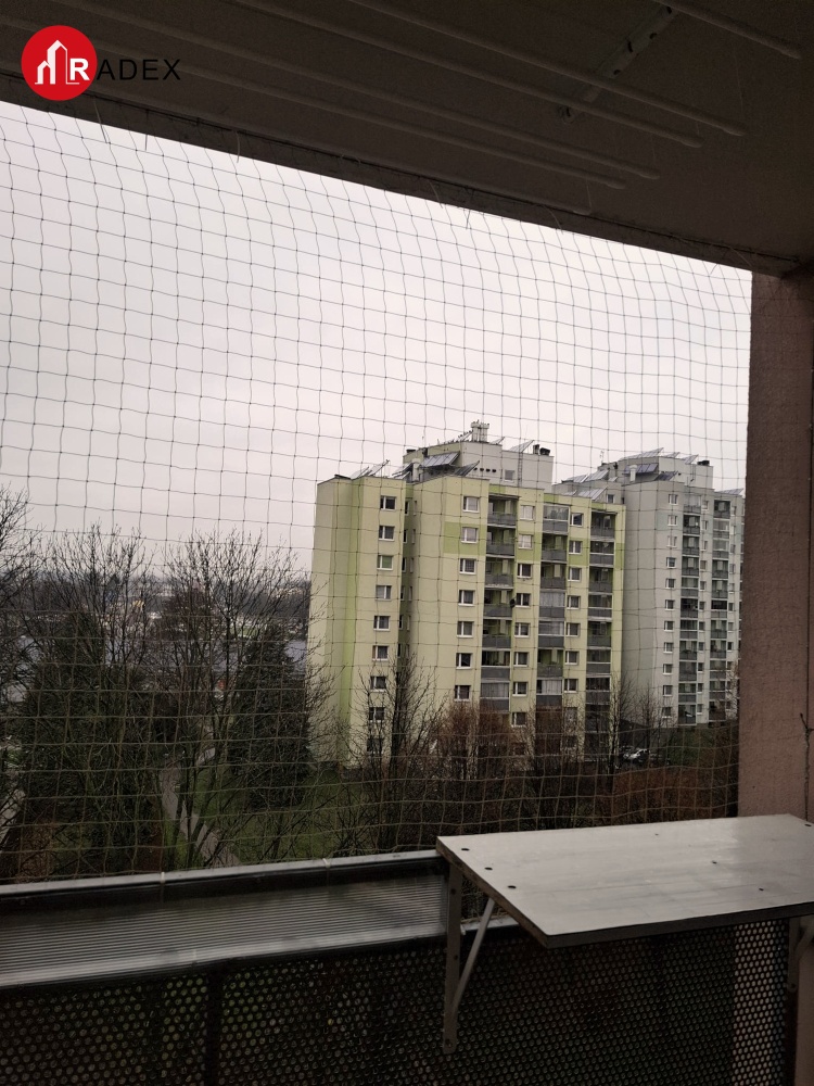• duży balkon zabezpieczony siatką – na balkonie są szafki do przechowywania