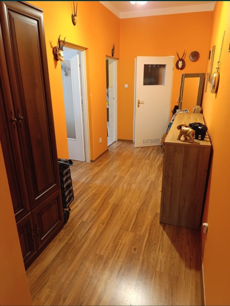 Kuchnię można przenieść do przedpokoju, który jest duży, w ten sposób będą dwa spore pokoje na 45mkw.