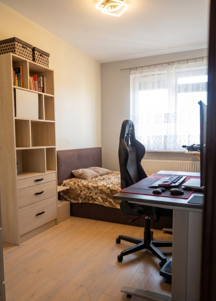 Potencjał: Mieszkanie jest do lekkiego odświeżenia, co pozwala na szybkie wprowadzenie się przy jednoczesnym dostosowaniu detali do własnego gustu.