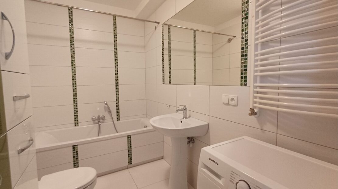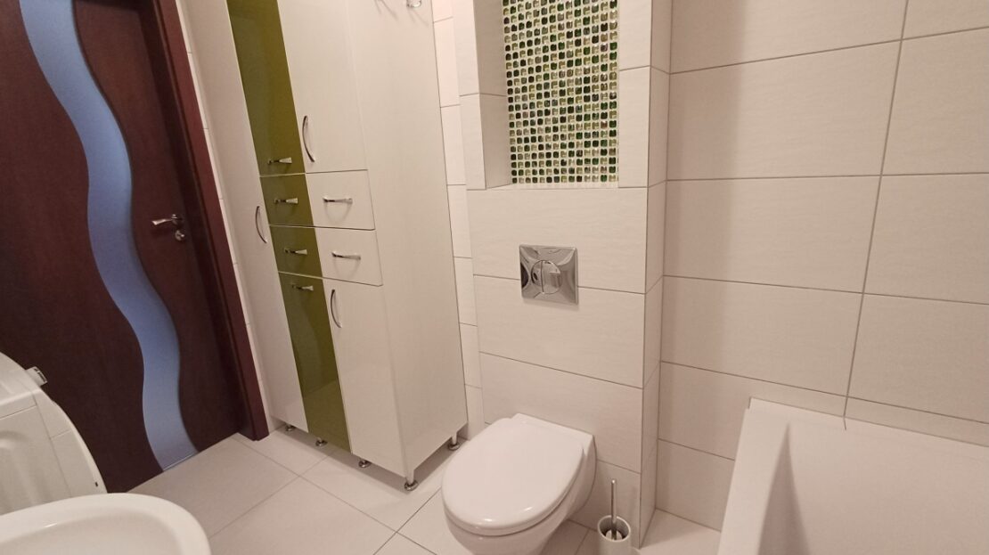 Mieszkanie jest w idealnym stanie (tylko do odmalowania). Meble (w kuchni, łazience, pokoju, garderobie i przedpokoju), podłogi i wyposażenie kuchni wyglądają tak, jakby nigdy nie były używane. Wszystko powyższe jest w cenie mieszkania.