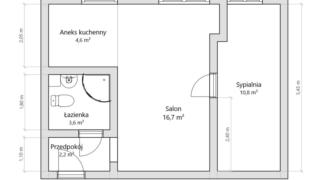 – Sypialnia – ok. 10,8 m²