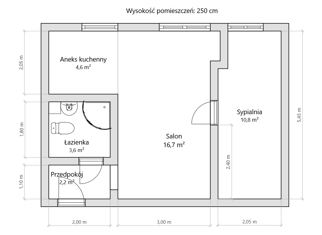 – Przedpokój – ok. 2,2 m²