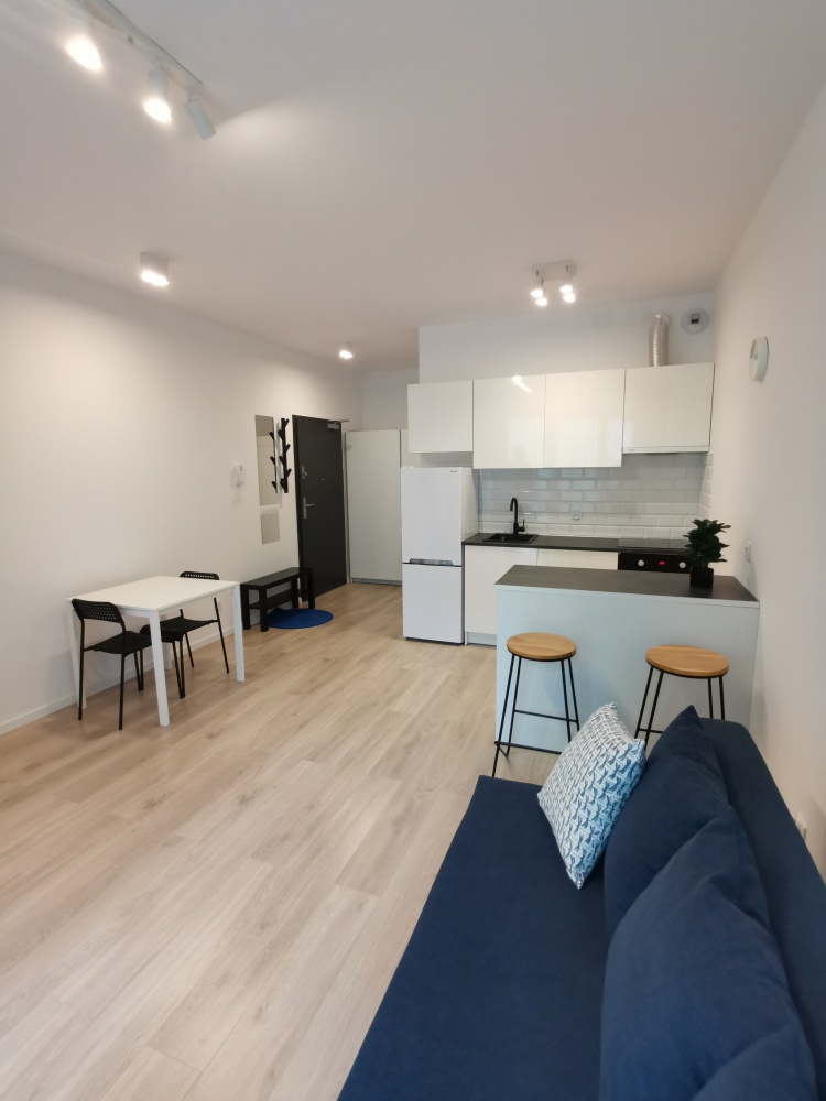Przytulne mieszkanie z ogródkiem, zlokalizowane na parterze budynku z 2020 r. w pełni umeblowane i wyposażone, składa się z pokoju z aneksem kuchennym, przedpokoju oraz łazienki. Ogrzewanie miejskie, brak gazu, okna wyposażone w rolety zewnętrzne.