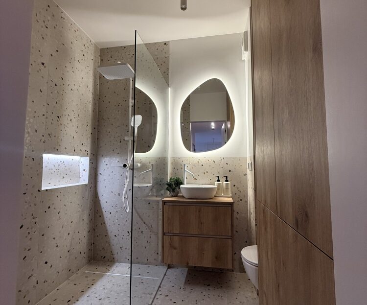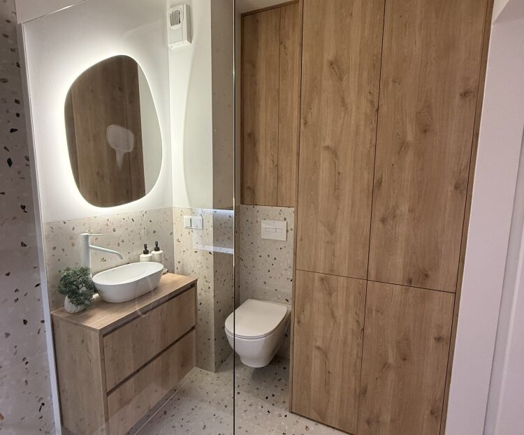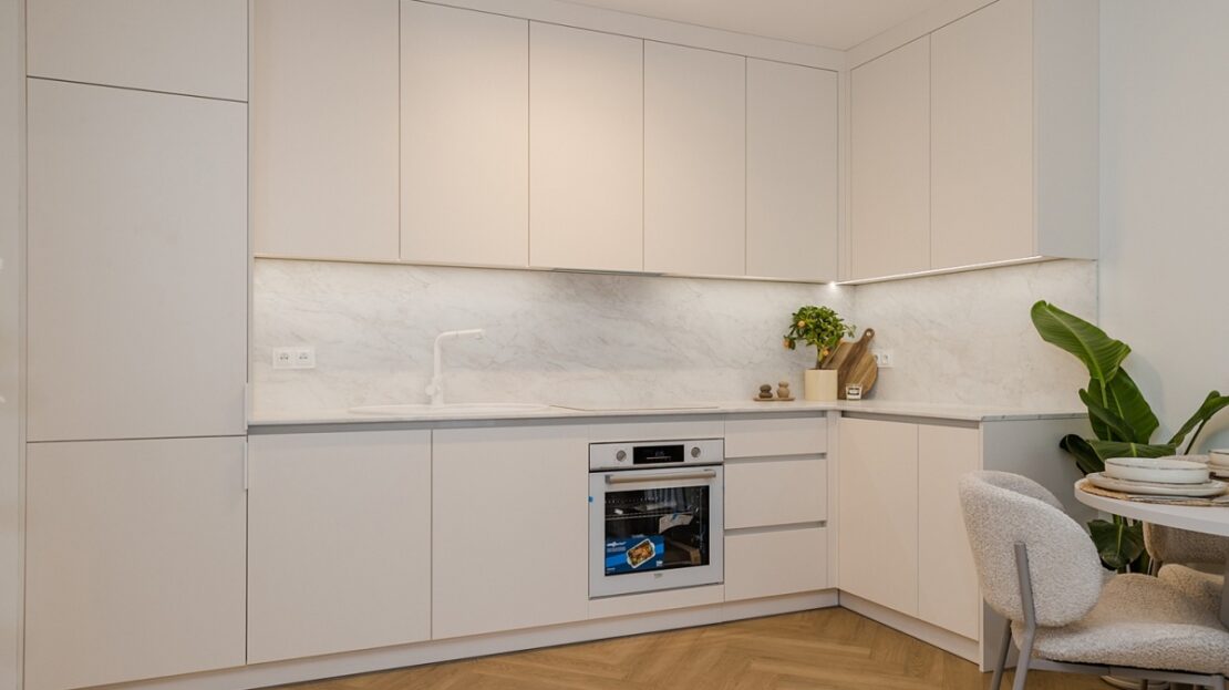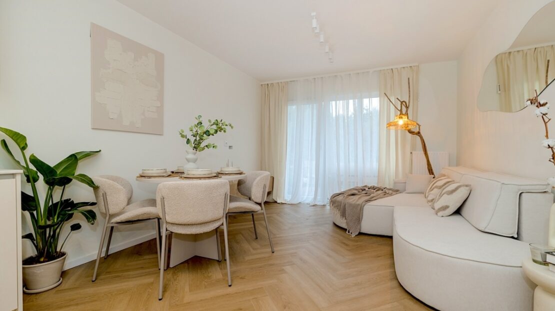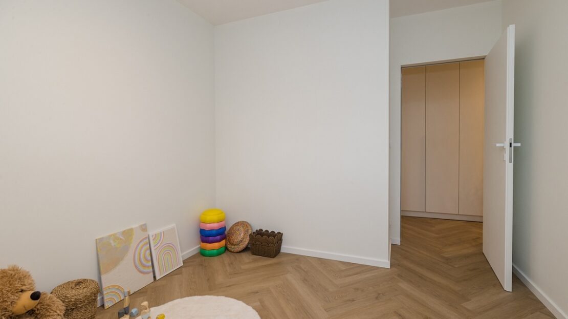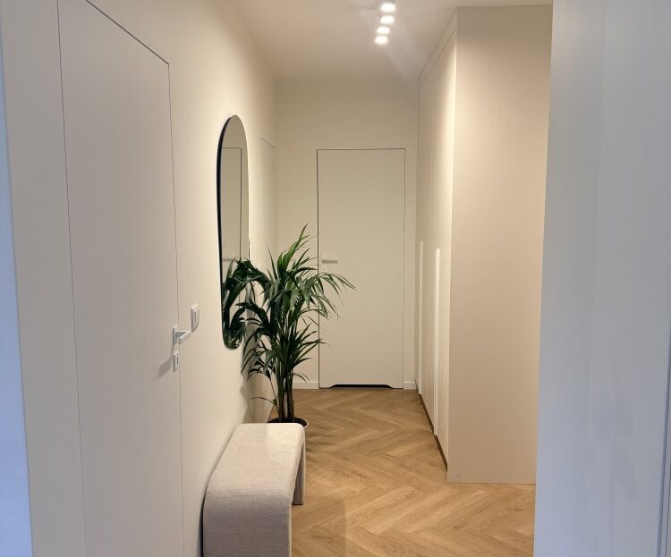To mieszkanie nigdy nie było zamieszkane. Wszystko jest fabrycznie nowe i objęte gwarancją – od sprzętów AGD po zabudowy stolarskie. Całość została zaprojektowana tak, aby maksymalnie wykorzystać przestrzeń: w kuchni, przedpokoju i łazience wykonano zabudowę na wymiar, która łączy funkcjonalność z elegancją.