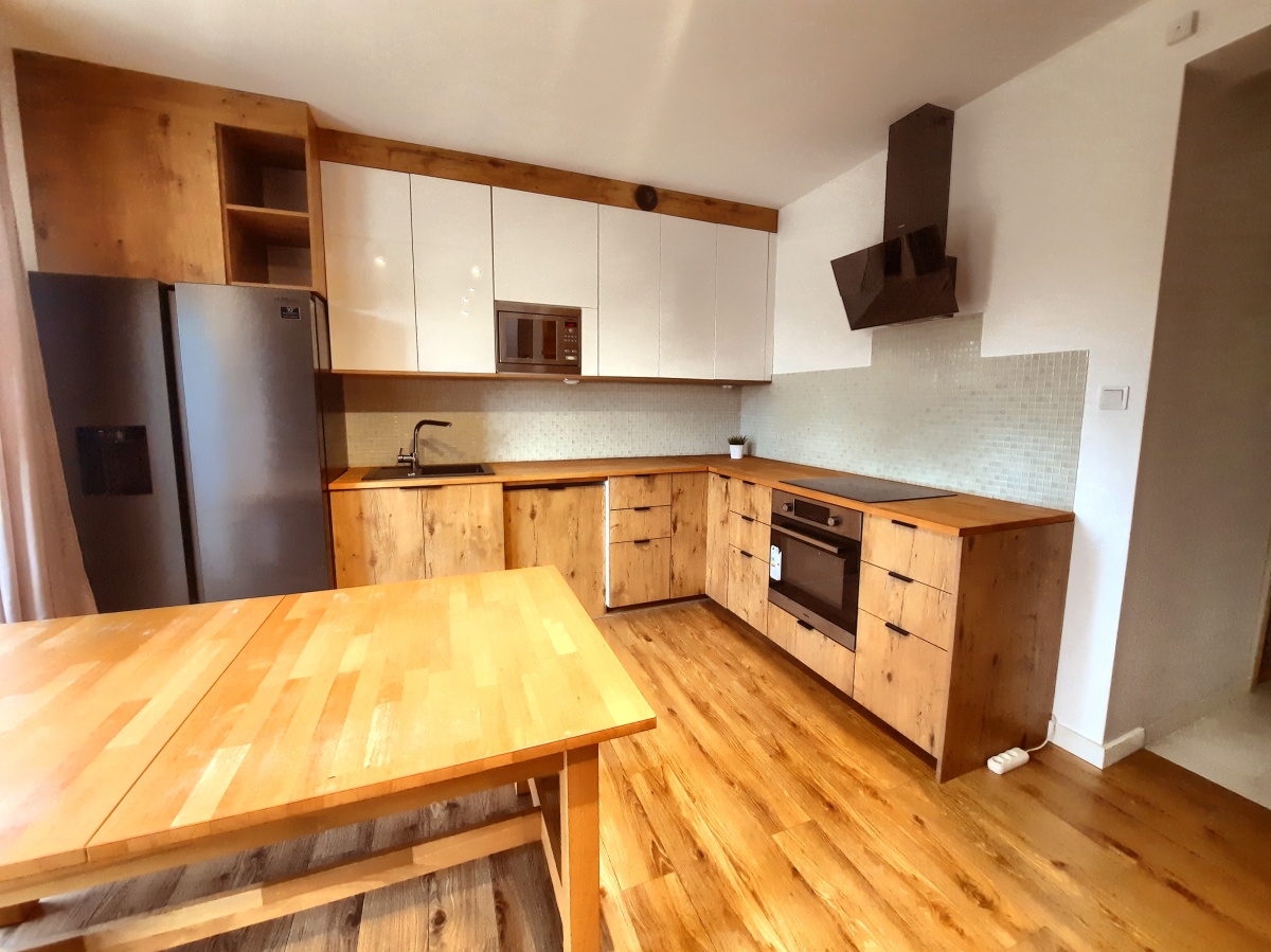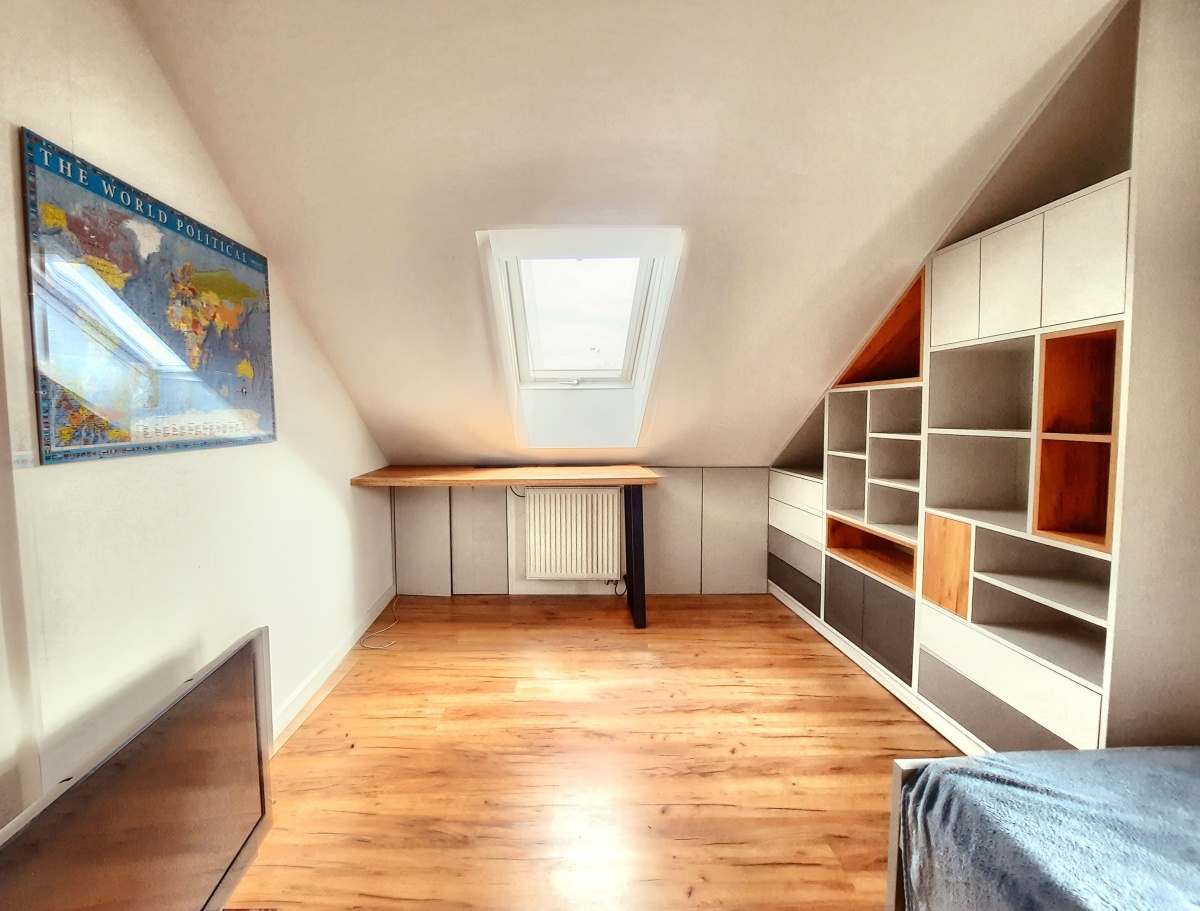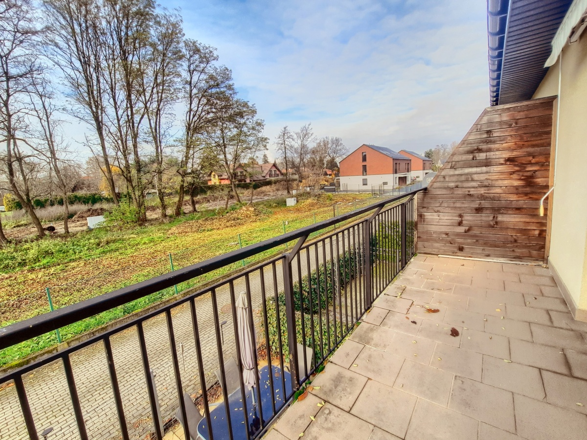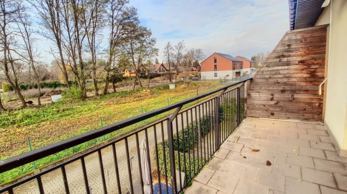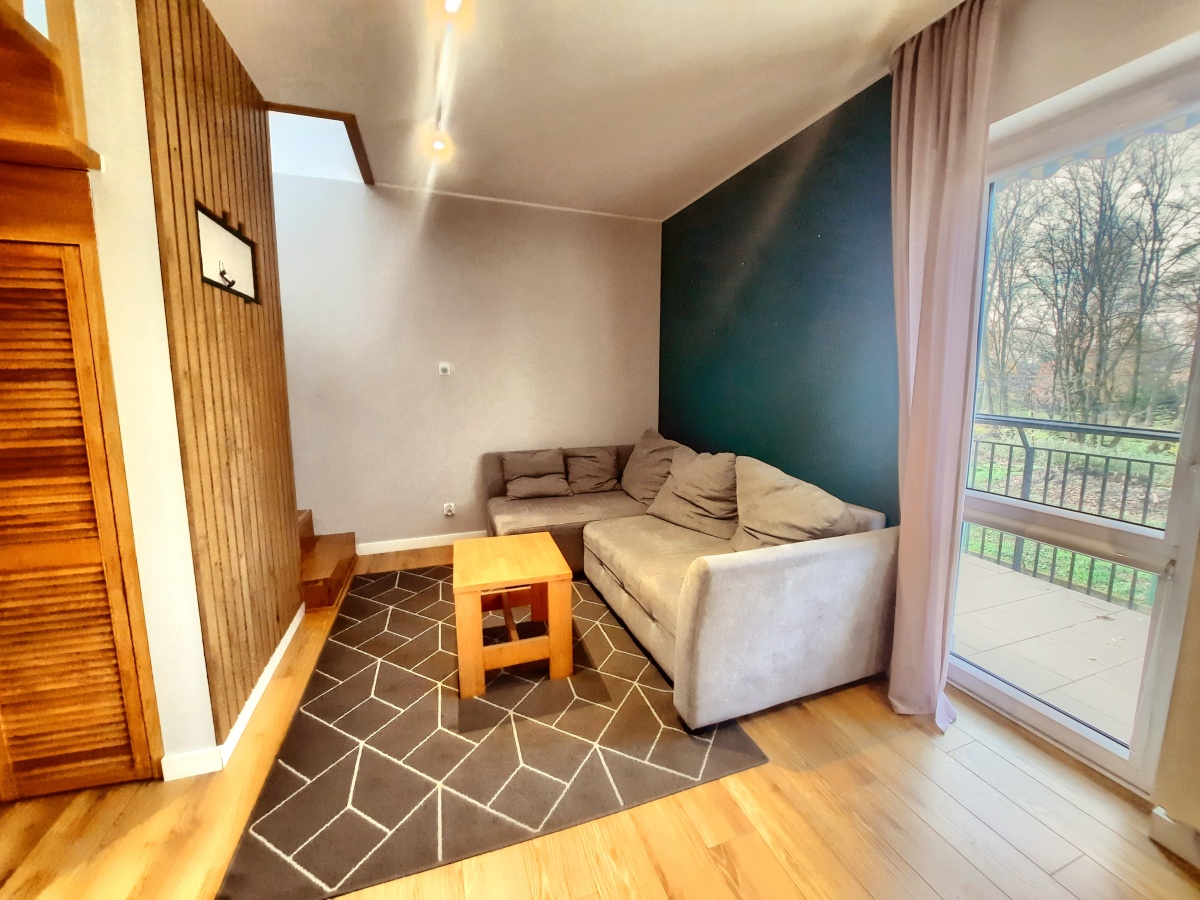 Mieszkanie na pierwszym piętrze i poddaszu jedno piętrowego budynku z 2008 roku. Do mieszkania przynależy ogródek i dwa miejsca postojowe na terenie wspólnoty. Miejsca dodatkowo płatne – łączna cena miejsc 50 000 złotych.