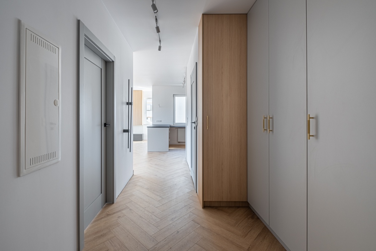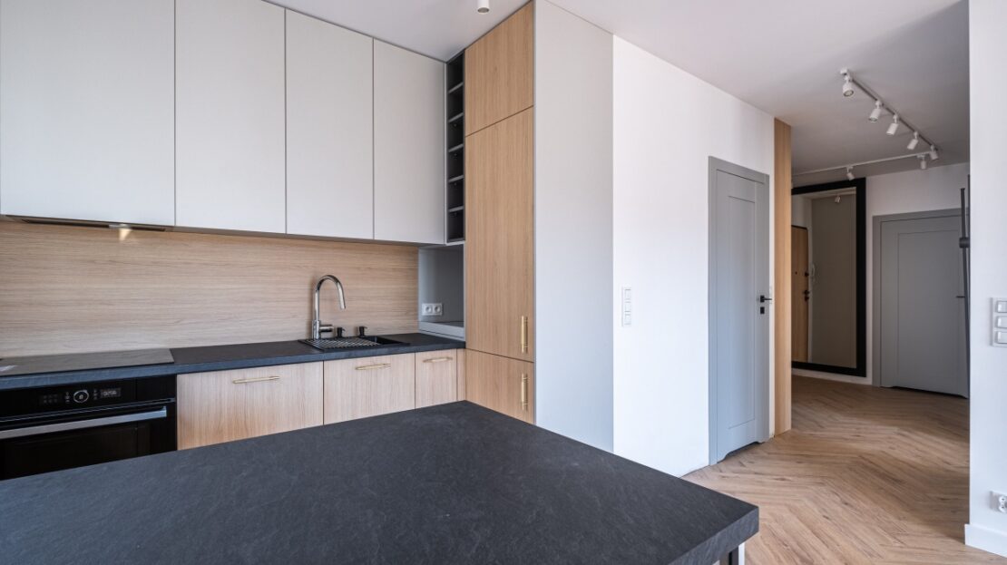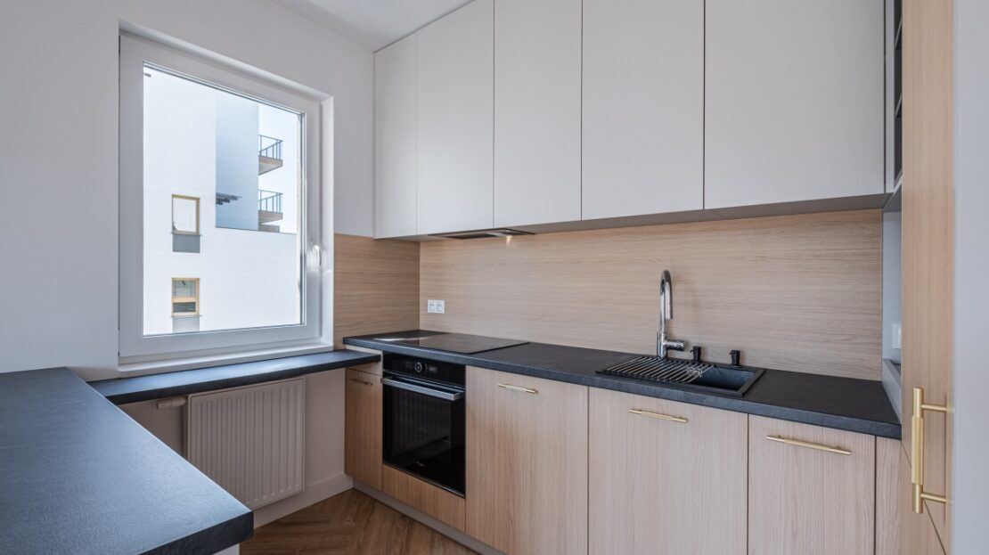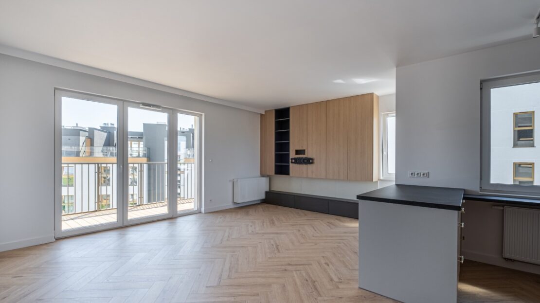 Wykończenie: mieszkanie nowe, gotowe do zamieszkania, wykończone w wysokim standardzie, przemyślane zabudowy stolarskie na wymiar, kuchnia w pełni wyposażona w wysokiej klasy sprzęt AGD.