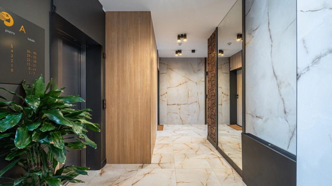 Ekspozycja: południowo – wschodnia, większość okien wychodzi na dziedziniec. Położenie samego mieszkania zapewnia intymność i przyjemne doświetlenie wnętrza. Znajduje się ono w budynku osłoniętym od ulicy Wielkopolskiej, okna wychodzą na wewnętrzny dziedziniec.
