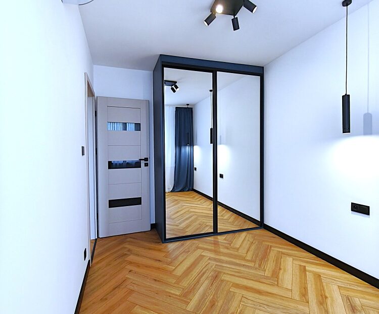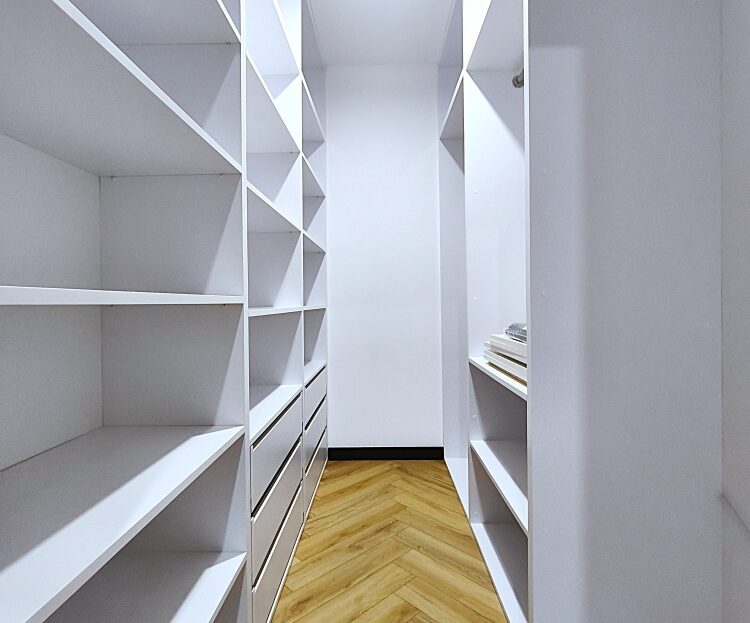 – nowa zabudowa w garderobie wykonana przez stolarza na wymiar