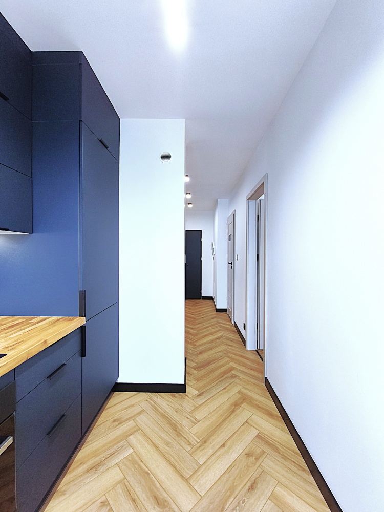 – nowe urządzenia agd (płyta indukcyjna, lodówka w zabudowie, piekarnik elektryczny, zmywarka, okap)