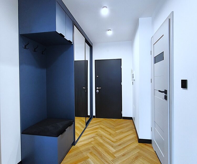 – nowa zabudowa meblowa w przedpokoju wykonana przez stolarza na wymiar
