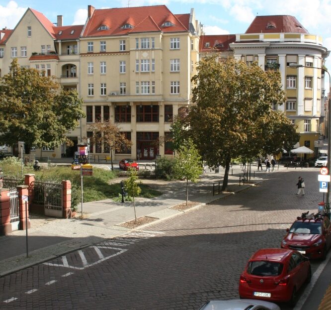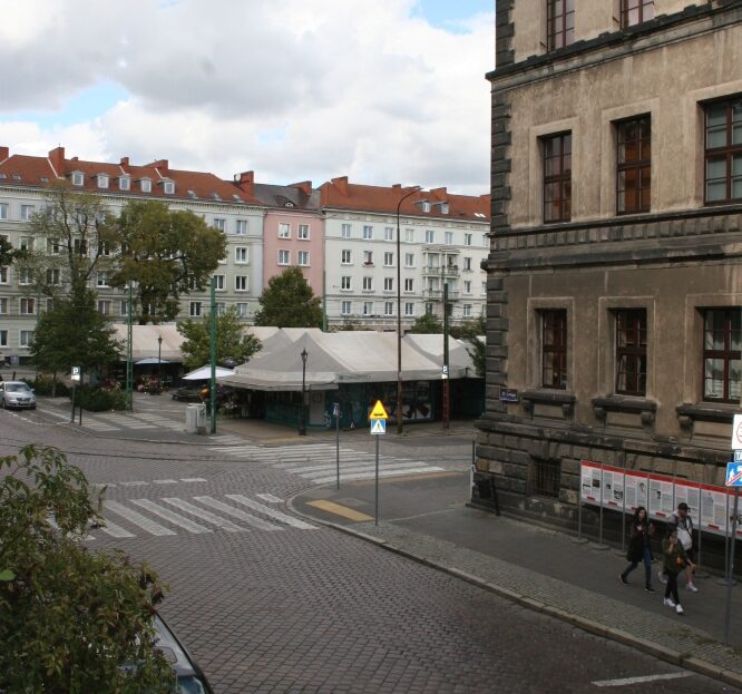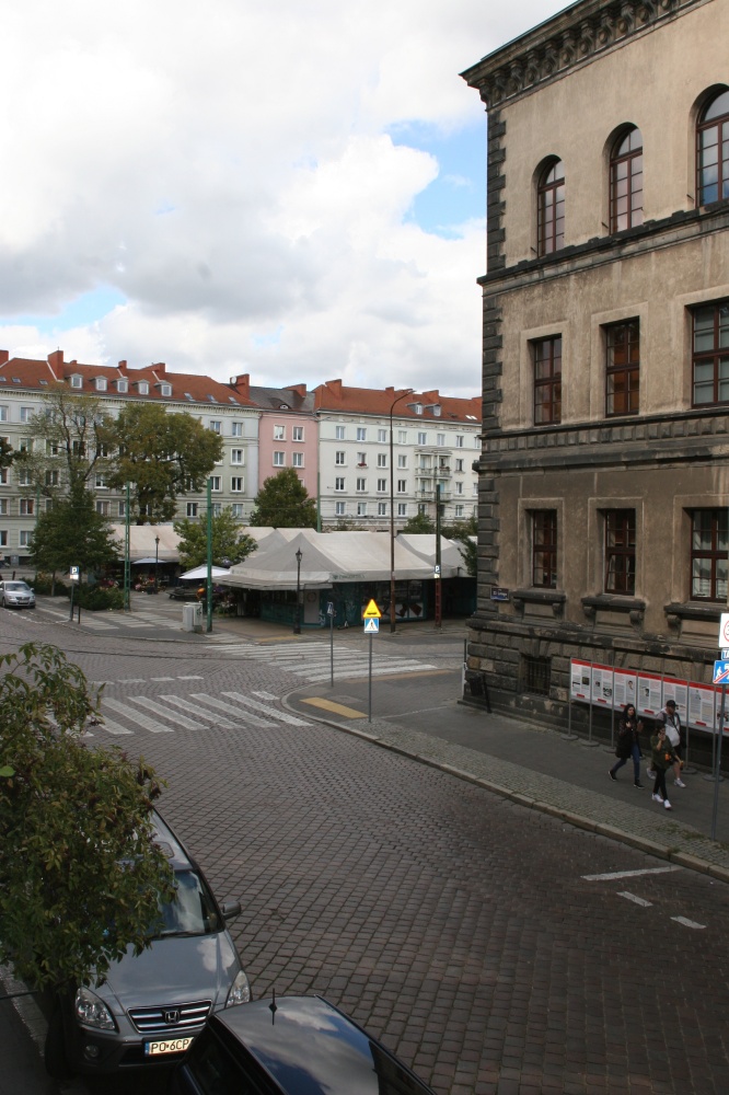 Ryneczek owocowo-warzywny (widać z okna), tramwaj, liczne sklepy i restauracje – wszystko na miejscu, w zasięgu wzroku.