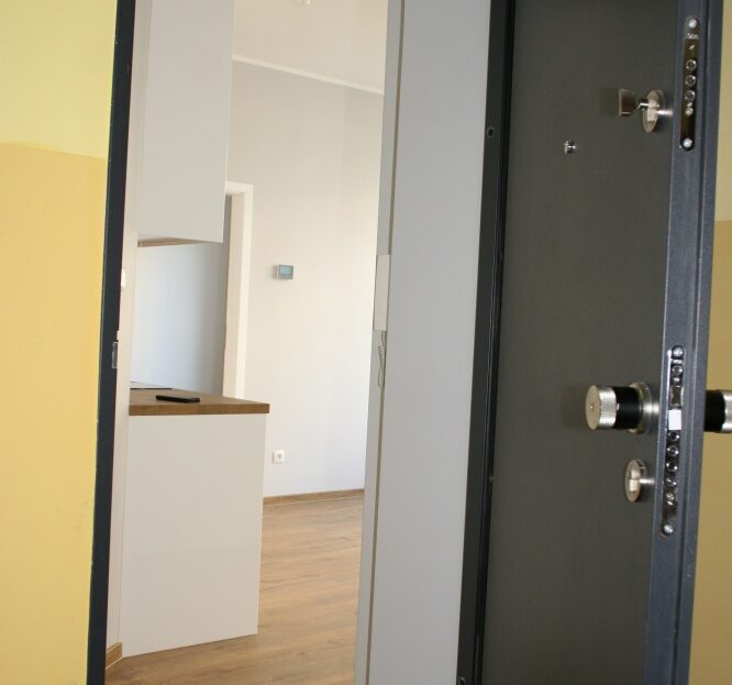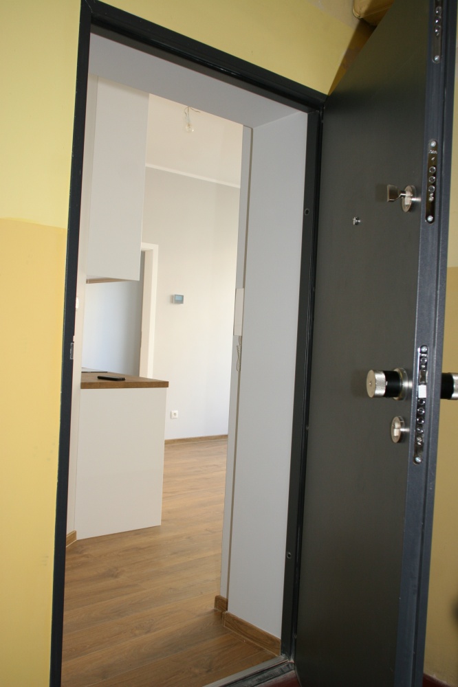 – certyfikowane drzwi antywłamaniowe, masywne, system 1 klucza, dźwiękoszczelne, z zamkiem szyfrowym, chipem i sterowaniem za pomocą smartfona