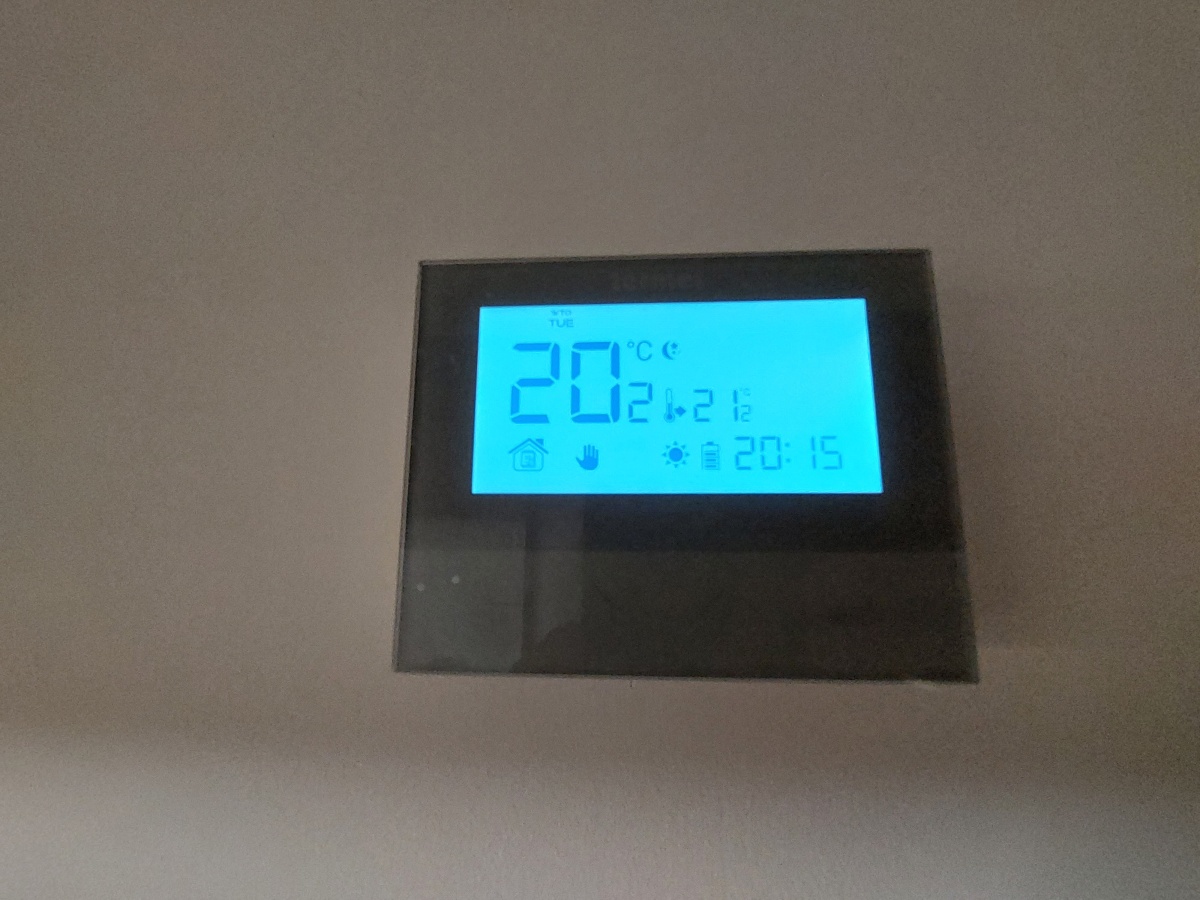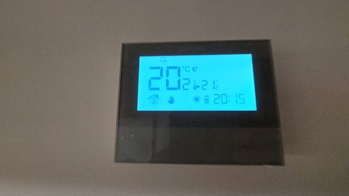– kocioł kondensacyjny Junkers wraz z panelem sterującym i czujnikiem temperatury w pokoju