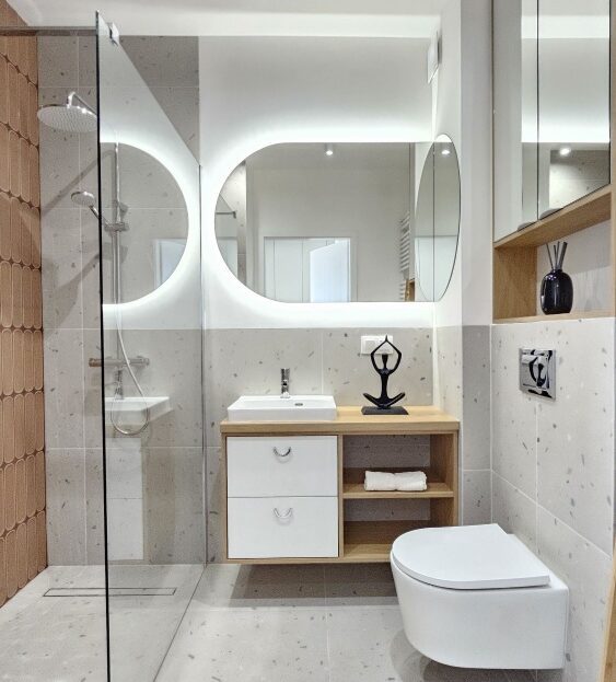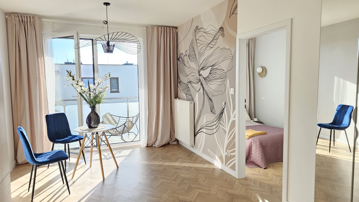 Mieszkanie jest nowo wykończone na wysoki standard, przy współpracy z projektantem, z dbałością o każdy detal. Pierwotny układ został zmieniony, aby zapewnić maksymalną funkcjonalność i wygodę. Gotowe do zamieszkania – meble na wymiar (w łazience, przedpokoju i kuchni) wykonane przez doświadczonego stolarza, kuchnia wyposażona w nowy sprzęt AGD.