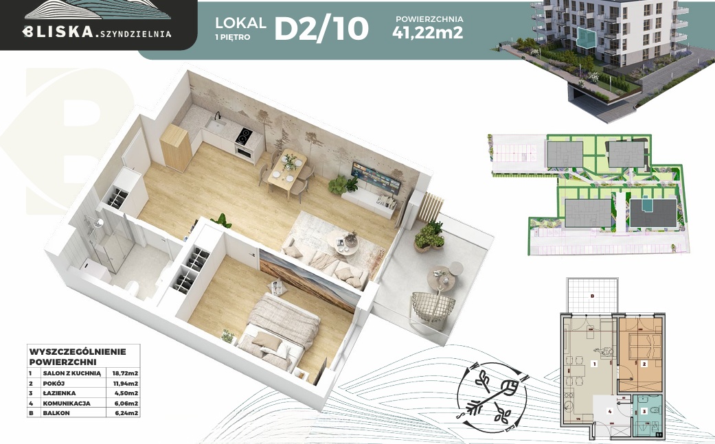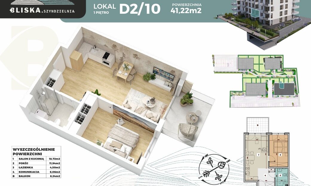 Mamy przyjemność zaprezentować wyjątkowy apartament o powierzchni 41,22 m², położony na pierwszym piętrze w prestiżowej inwestycji Bliska Szyndzielnia.