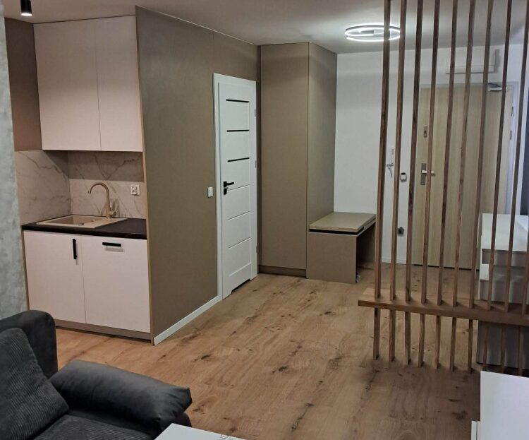 Do wynajęcia nowe, w pełni umeblowane mieszkanie, wykończone na bardzo wysokim poziomie. Lokal urządzony z dbałością o detale, w nowoczesnym stylu – wszystko nowe, nie używane.