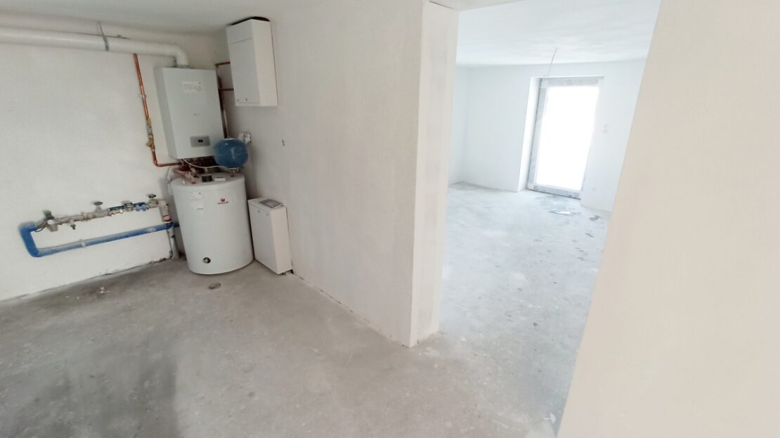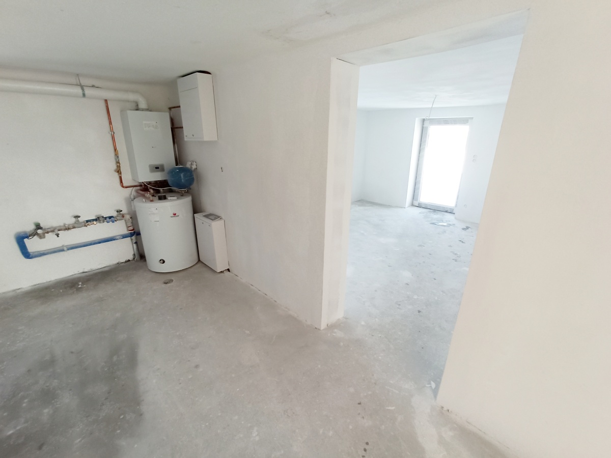 Pomieszczenie gospodarcze / kotłownia (27,5 m²) z nowym piecem gazowym i zasobnikiem CWU.