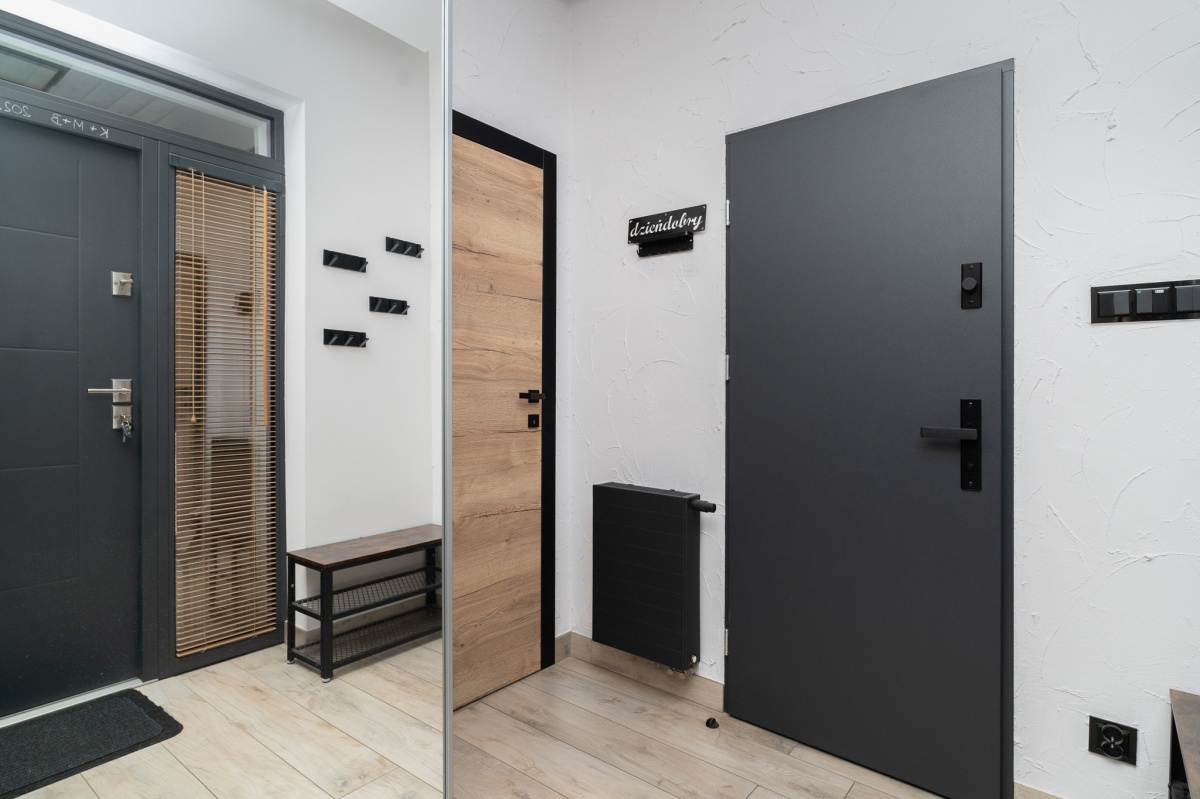 -przedpokój z wejściem do pomieszczenia gospodarczego, w którym znajduję się piec.